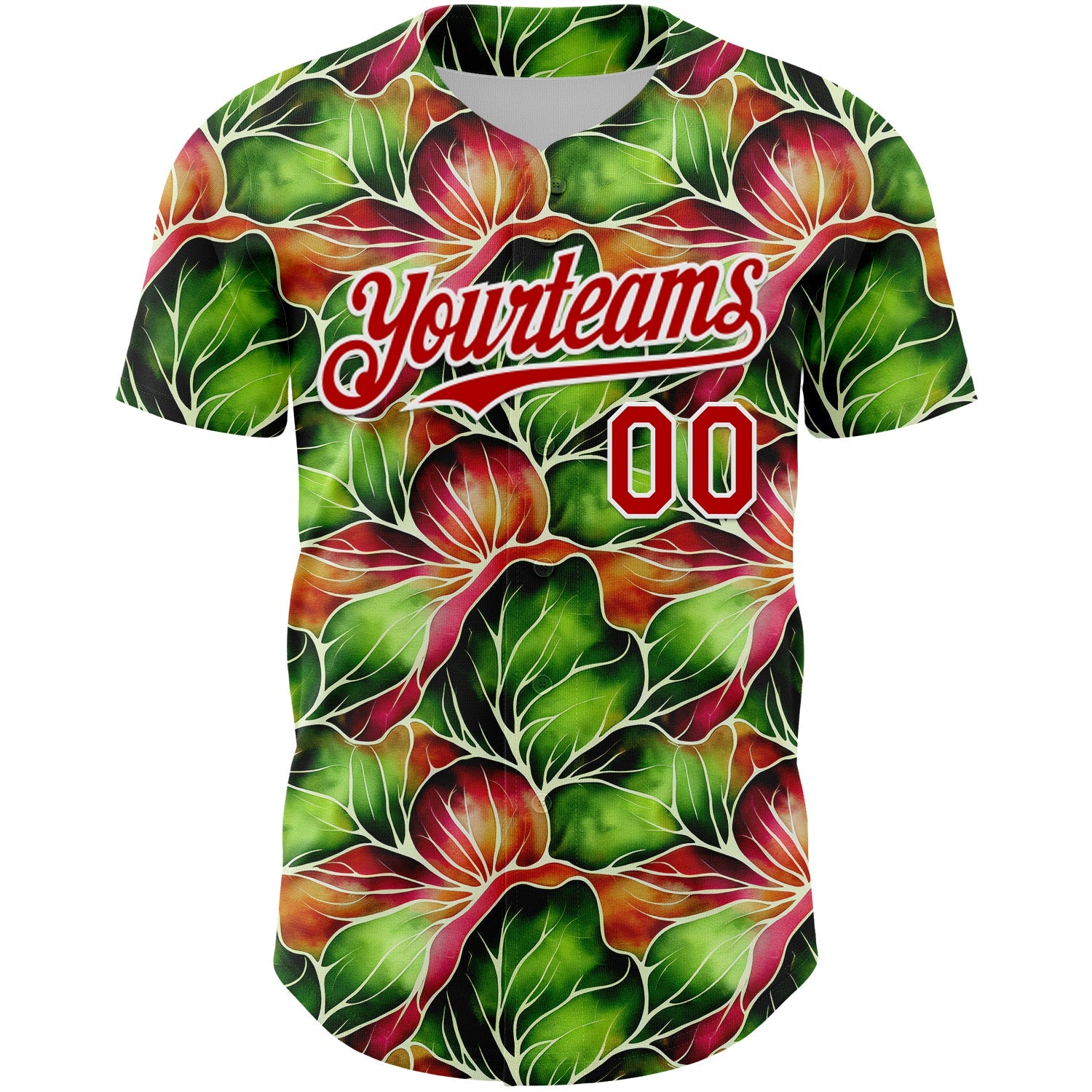 Custom Black Red-White 3D Pattern Design Tropical Plant Authentic Baseball Jersey