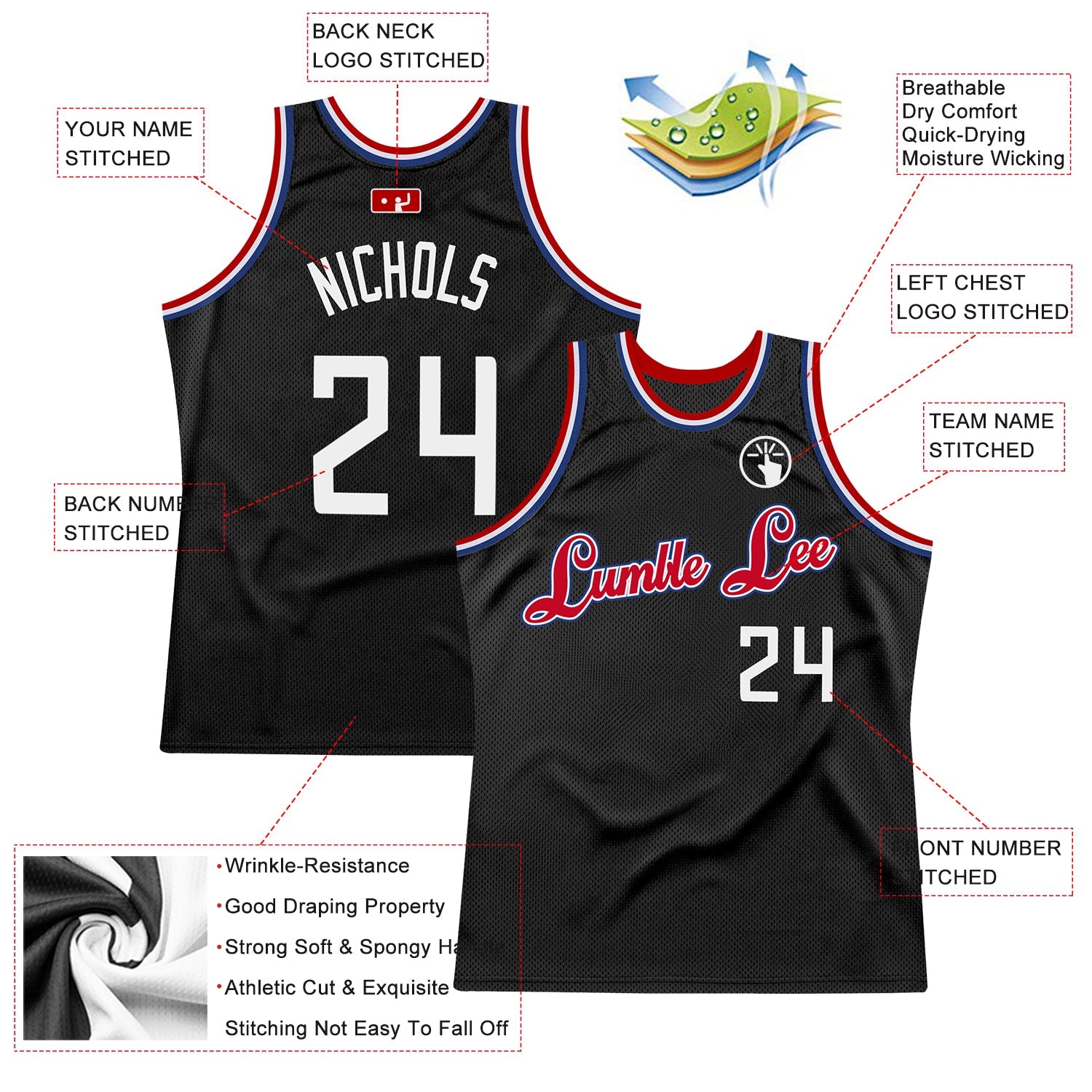 Represent your distinct look with this custom basketball jersey from our web. It boasts stitched tackle twill name & number and classic trims along with moisture-wicking technology for added comfort.