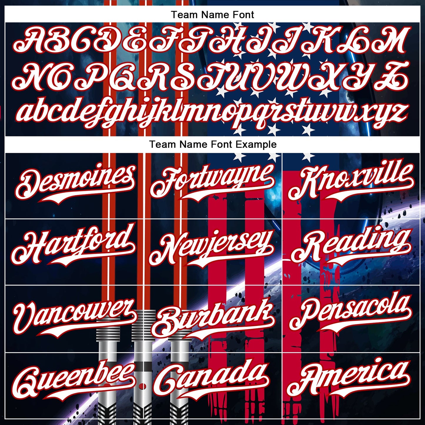 Custom Blue White-Red 3D Pattern Design American Flag Outer Space Light Swords Authentic Baseball Jersey