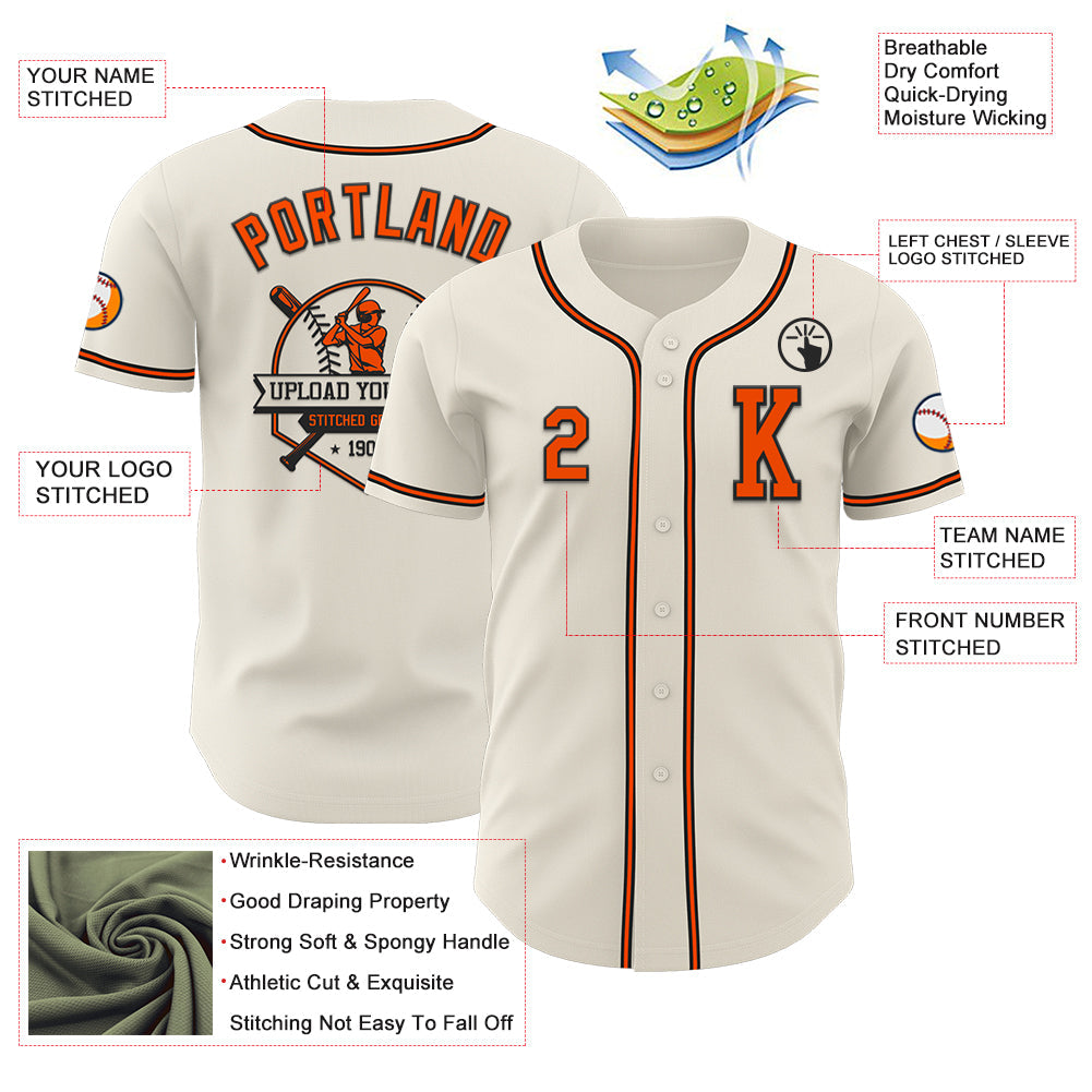 Custom Cream Orange=Black Authentic Baseball Jersey