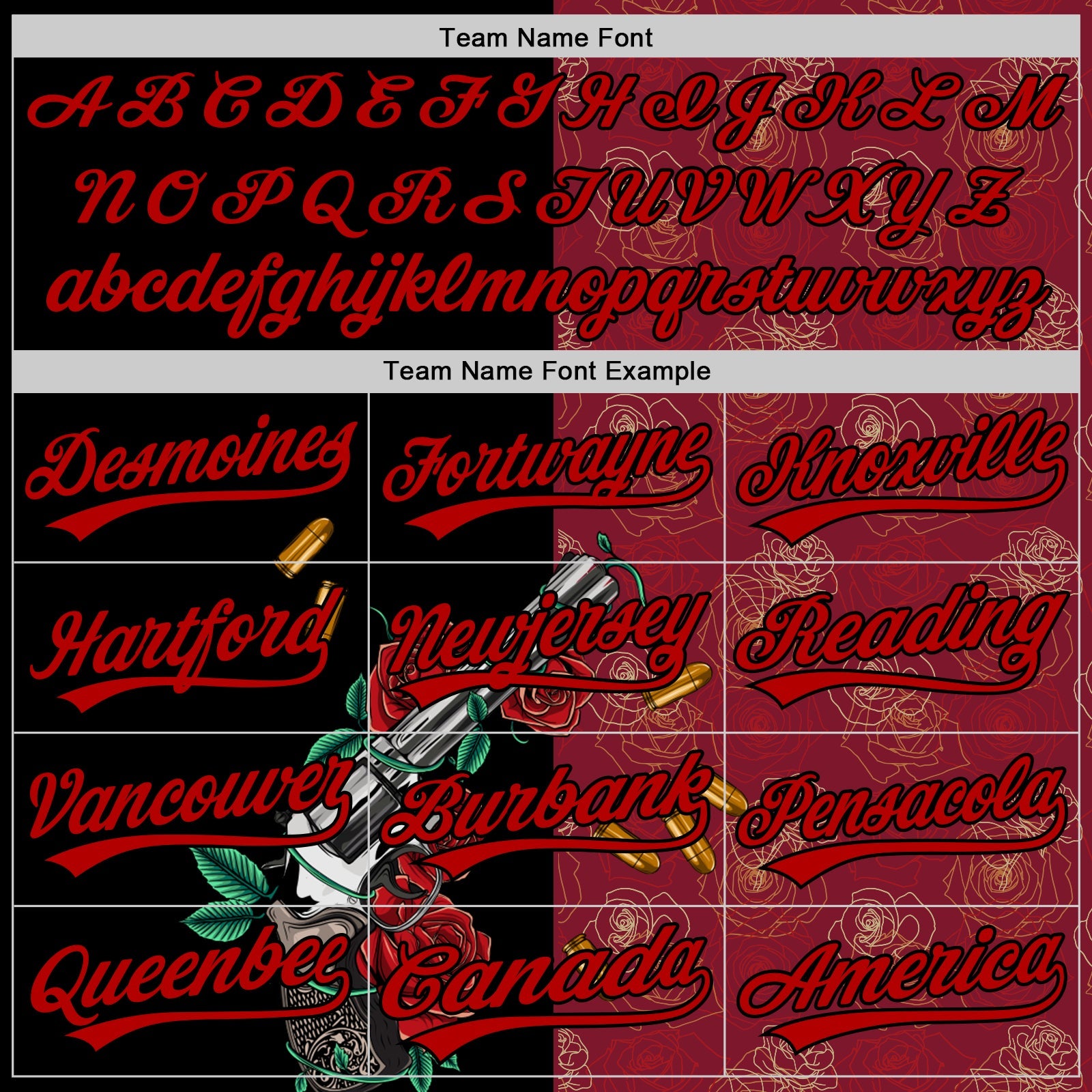 Custom Crimson Black-Red 3D Pattern Design Gothic Style Gun With Rose Authentic Baseball Jersey