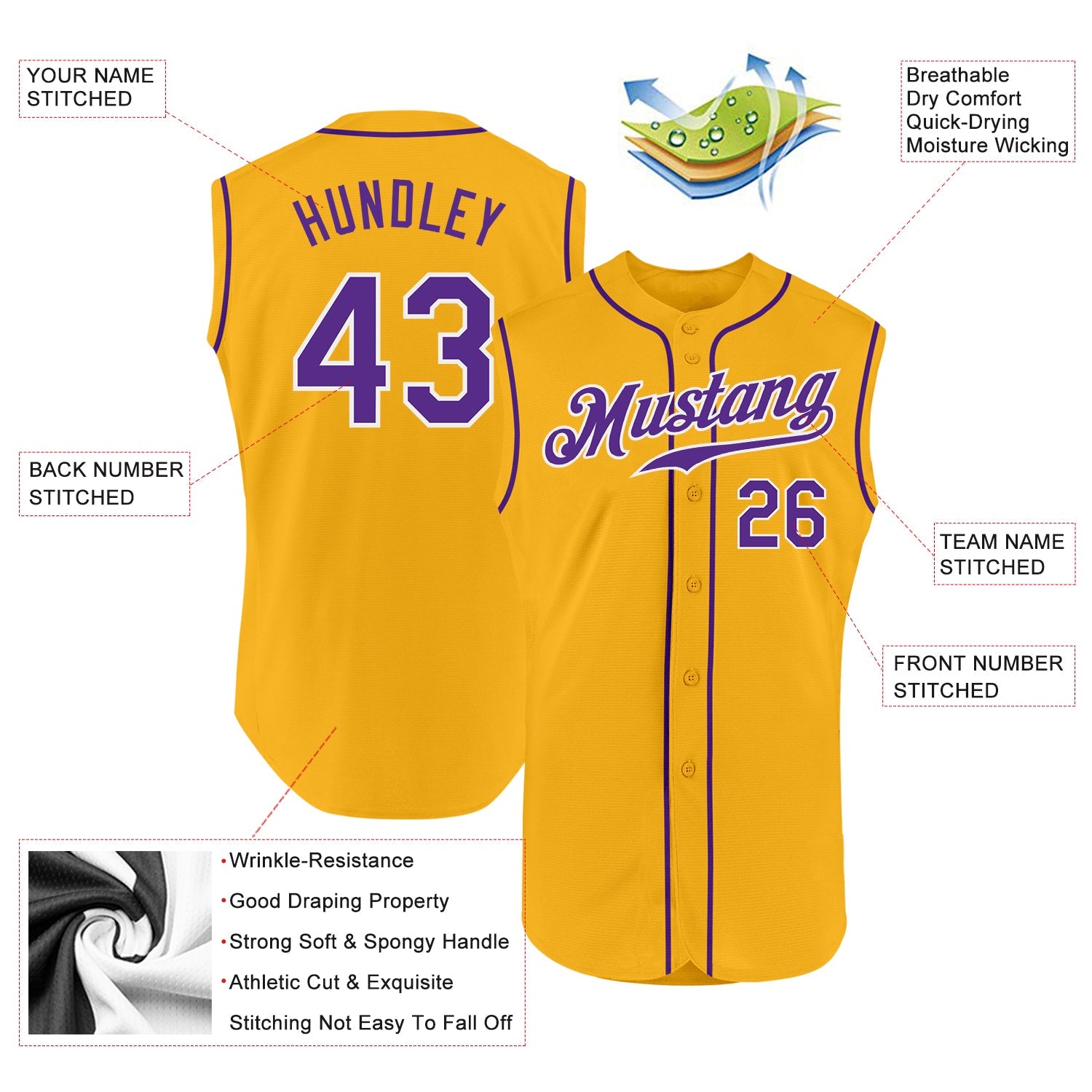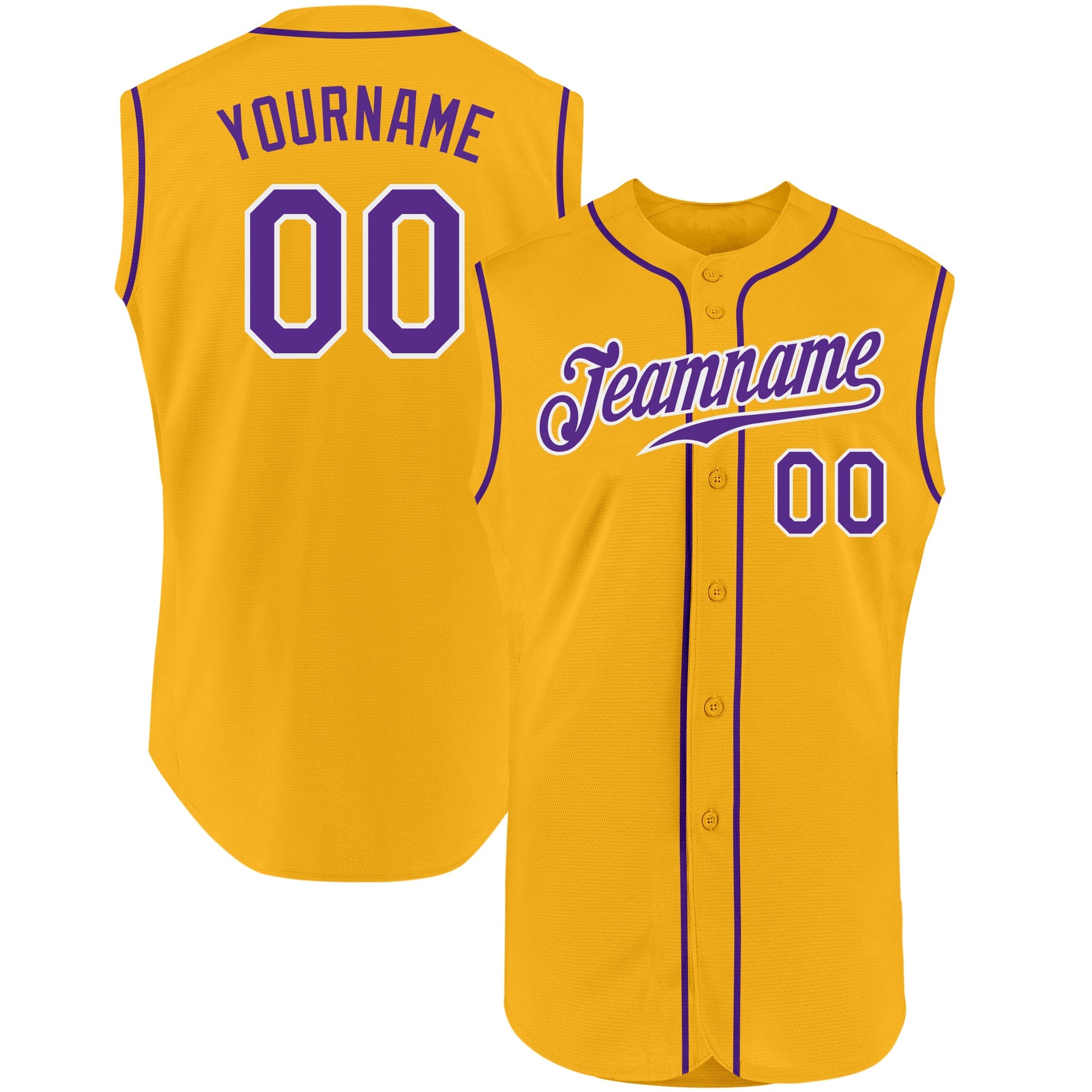 Custom Gold Purple-White Authentic Sleeveless Baseball Jersey