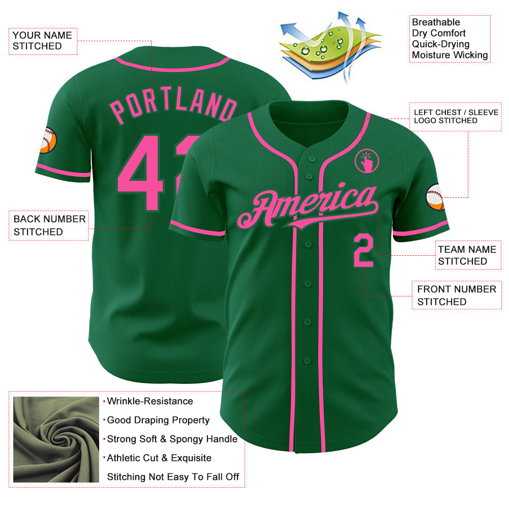 Custom Kelly Green Pink Authentic Baseball Jersey