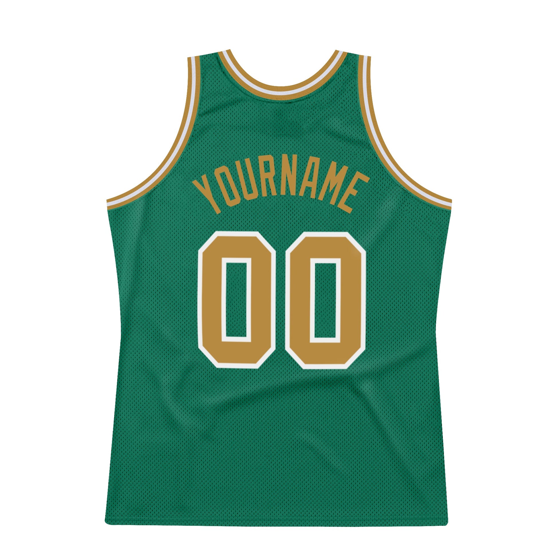 Custom Kelly Green Old Gold-White Authentic Throwback Basketball Jersey