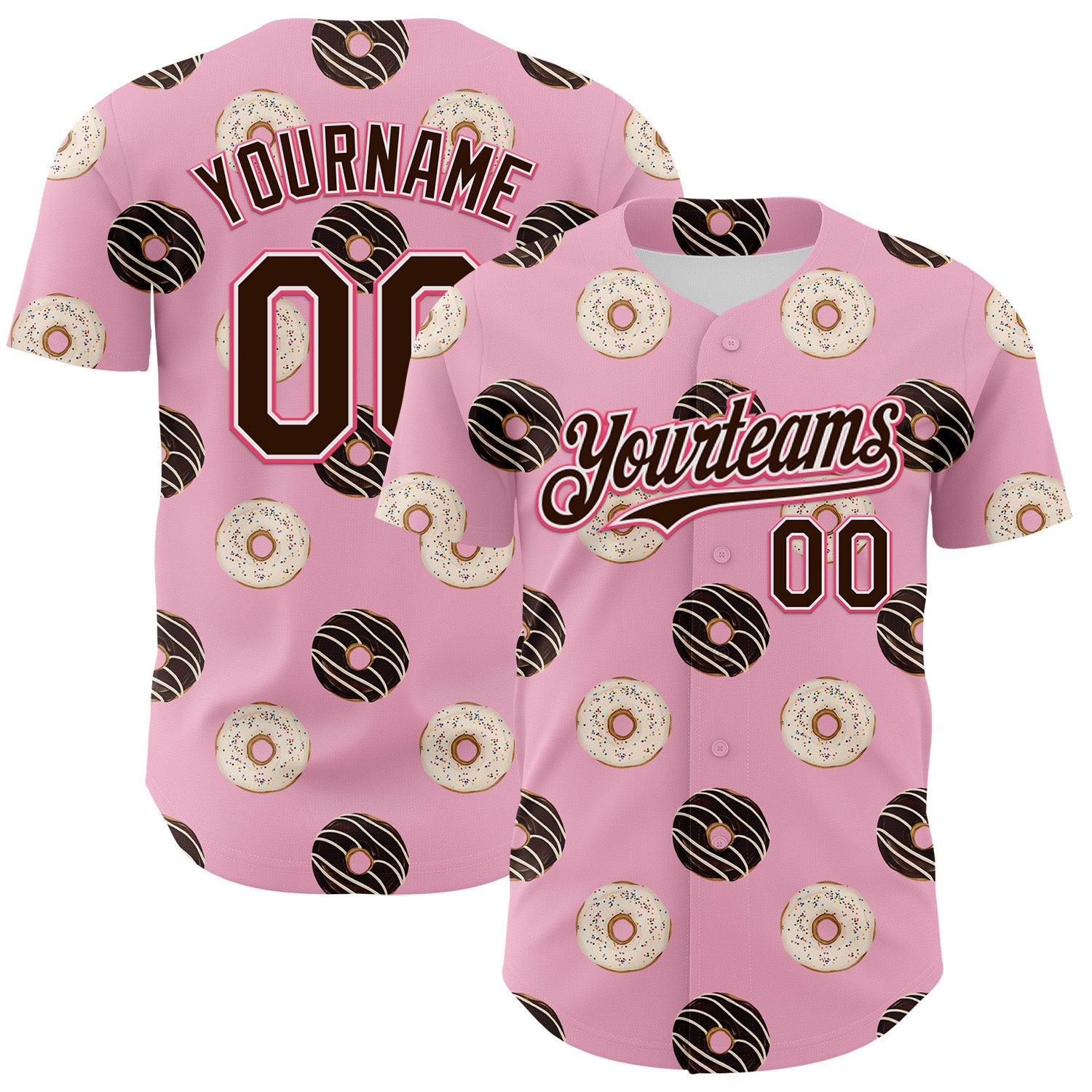 Custom Light Pink Brown-Neon Pink 3D Pattern Design Foodie Food Dessert Doughnut Authentic Baseball Jersey