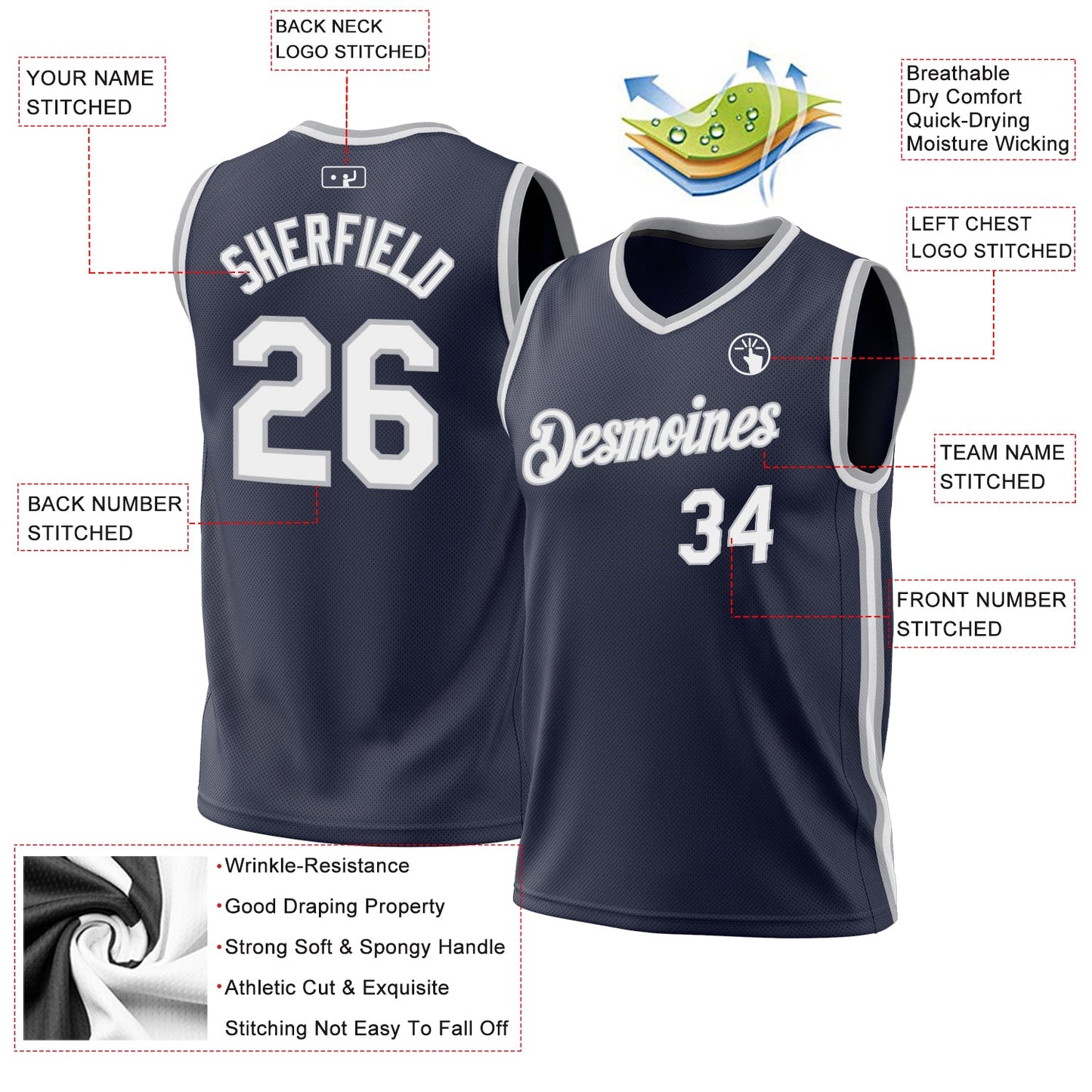 Represent your distinct look with this custom basketball jersey from our web. It boasts stitched tackle twill name & number and classic trims along with moisture-wicking technology for added comfort.