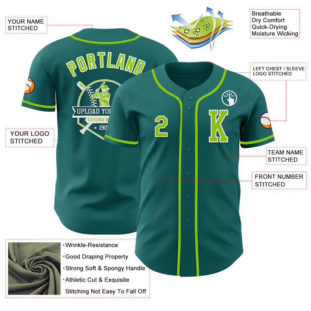 Custom Teal Neon Green-White Authentic Baseball Jersey