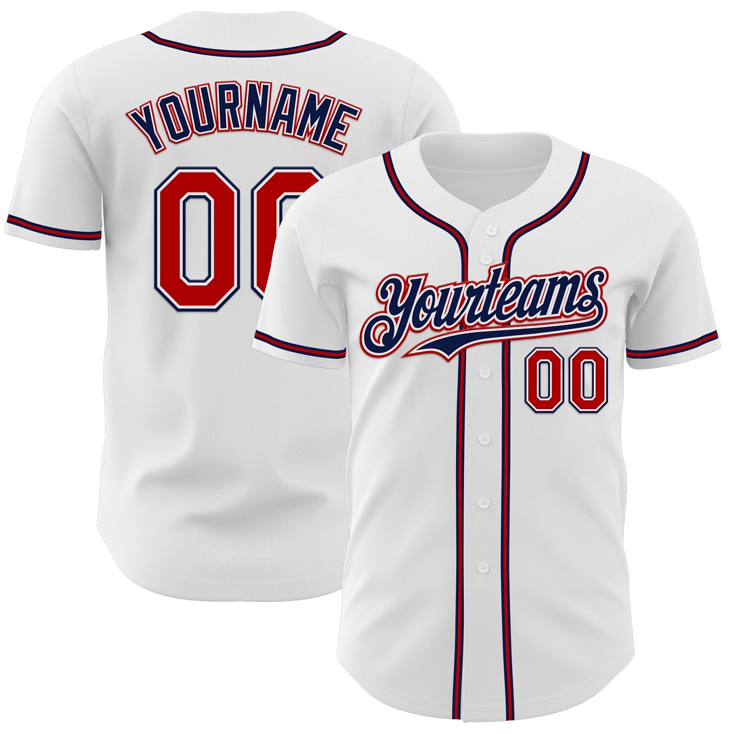 Custom White Red-Navy Authentic Baseball Jersey